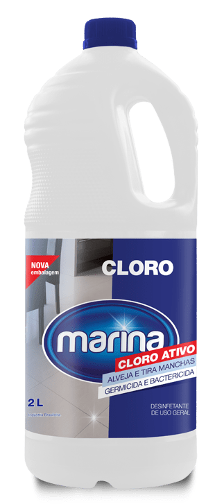 Produto de alta qualidade, o Super Cloro Marina alveja e desinfeta eliminando bactérias. Pode ser usado no alvejamento de roupas brancas, remoção de manchas, limpeza geral, desinfecção de cozinhas e banheiros. A concentração de nossos produtos é realizada em total acordo com as normas da Anvisa. É encontrado nas versões 1 litro, 2 litros e 5 litros.